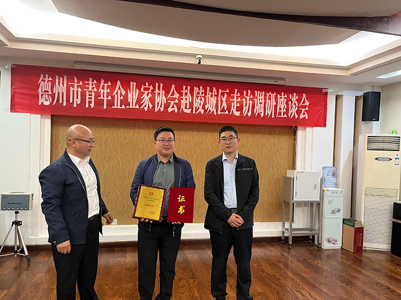 5月14日,德州市青年企业家协会代表来鑫鼎昊环保科技有限公司,参观交流,并授予理事单位证书。